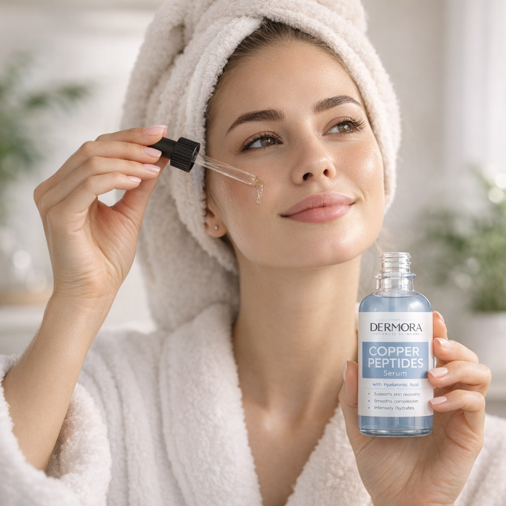 Powered by Copper Peptides + Hyaluronic Acid, Dermora helps support skin repair, boost hydration, and improve overall texture — without heaviness or irritation.